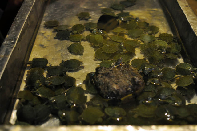 This stall was selling shells and dried puffer fish. I love the googly eyes.